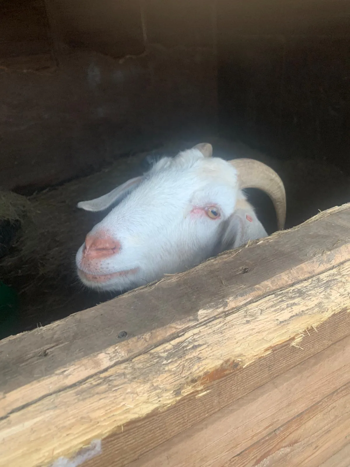 Floppy was always a well looked after goat from our neighbouring farm and hand reared; however when Floppy lost his brother to cancer, he was lonely but did not get along with the other animals at the farm so he came to us. Since then he has made friends with the other residents and is happy and continuing to thrive. He likes his food and causes mischief!