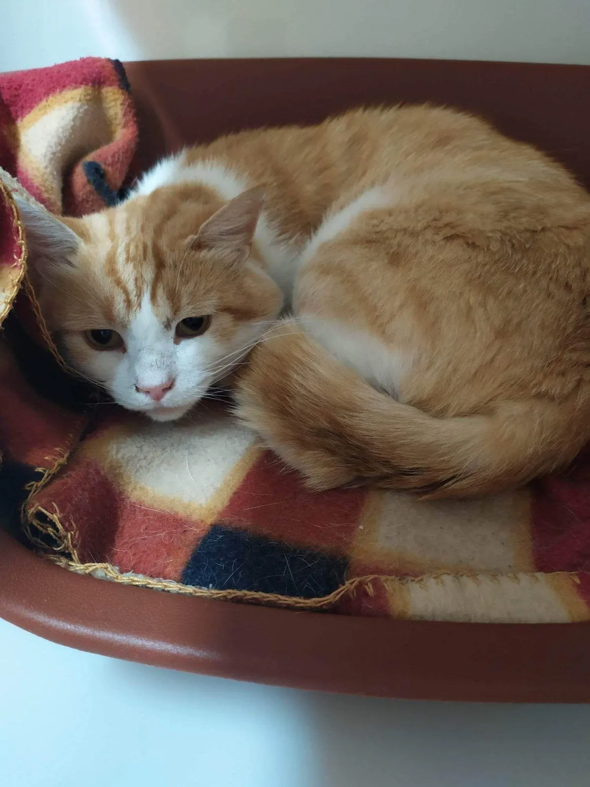 Not much is known about Mr Fluffy, but he has been with Happyfields for a few years now, he is a very shy boy. You may see a glimpse of ginger hiding in a bush or under the caravan!